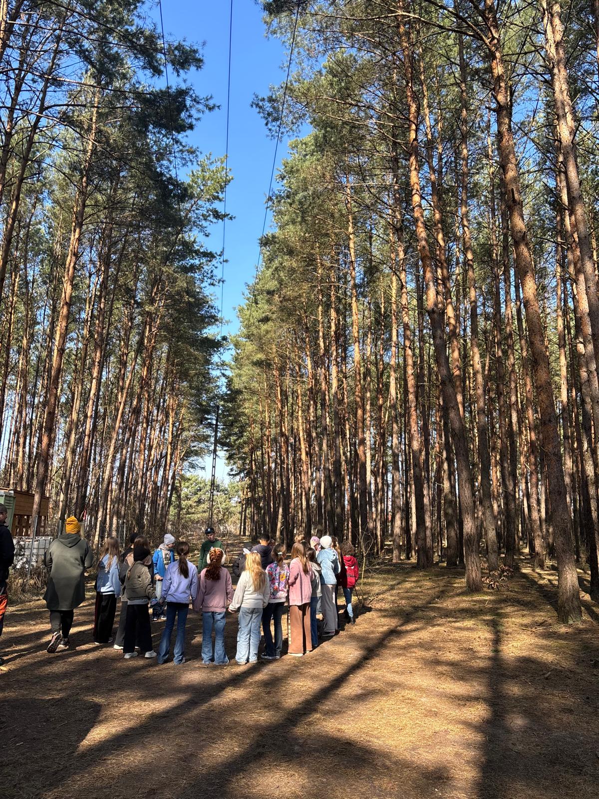 Z muzeum udaliśmy się do Leśnej Bazy Puszczykowo. Po instruktażu bezpieczeństwa nasi młodzi odkrywcy ruszyli na podbój parku linowego. Kluczowym punktem programu była jednak kilkuetapowa gra leśna. Drużyny musiały wykazać się zwinnością i spostrzegawczością, a finał wzbudził ogromne emocje – uczniowie zmierzyli się z serią pytań sprawdzających pamięć oraz refleks. Nagrodą była tajemnicza zawartość drewnianej skrzyni, której zdobycie przypieczętowało sukces całego zespołu.