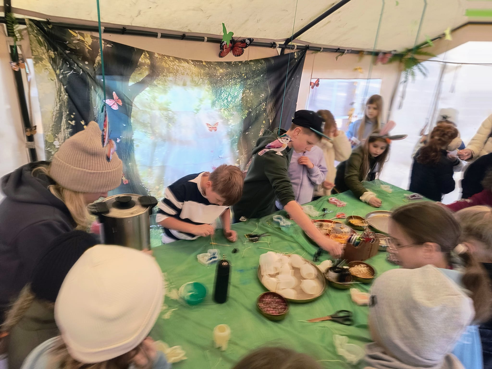 Wiosenny klimat dopełniły warsztaty robienia świeczek wielkanocnych. Spod rąk uczniów wyszły piękne ozdoby w kształcie zajączków i jajek. To była świetna lekcja rzemiosła, a te małe dzieła sztuki z pewnością uświetnią nadchodzące święta w domach naszych uczniów.