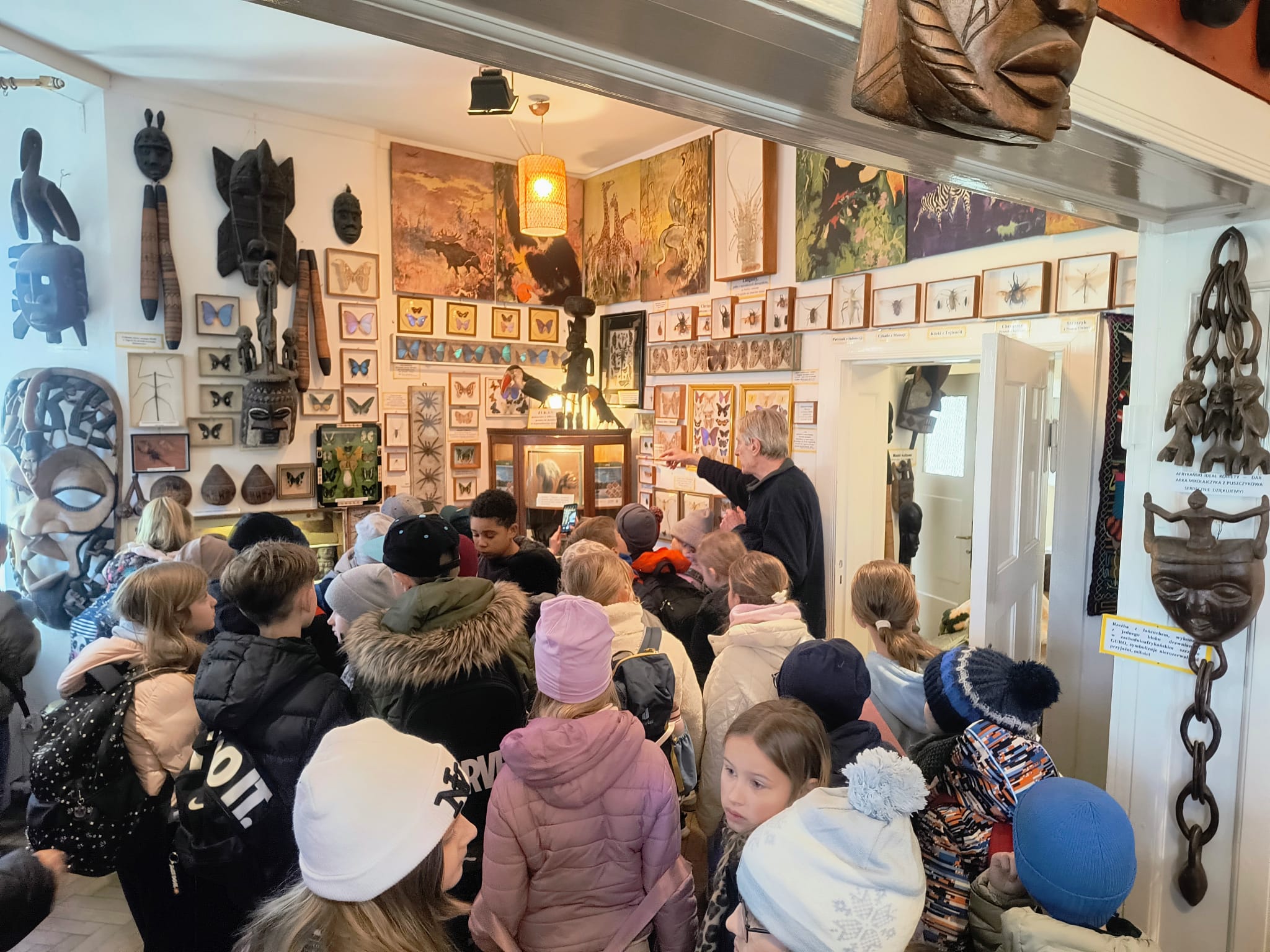 Naszą przygodę rozpoczęliśmy w Muzeum-Pracowni Literackiej Arkadego Fiedlera. Dzieci z zaciekawieniem słuchały opowieści o dalekich wyprawach, podziwiając pamiątki z Amazonii, Afryki i Kanady. Największy podziw wzbudziły egzotyczne maski obrzędowe oraz naturalnej wielkości replika statku Krzysztofa Kolumba – „Santa Maria”. Drugie śniadanie w zakątku Ogrodu Tolerancji, gdzie uczniowie oprócz statku mogli zobaczyć również piramidę oraz model samolotu Hurricane z Dywizjonu 303, smakowało fantastycznie.