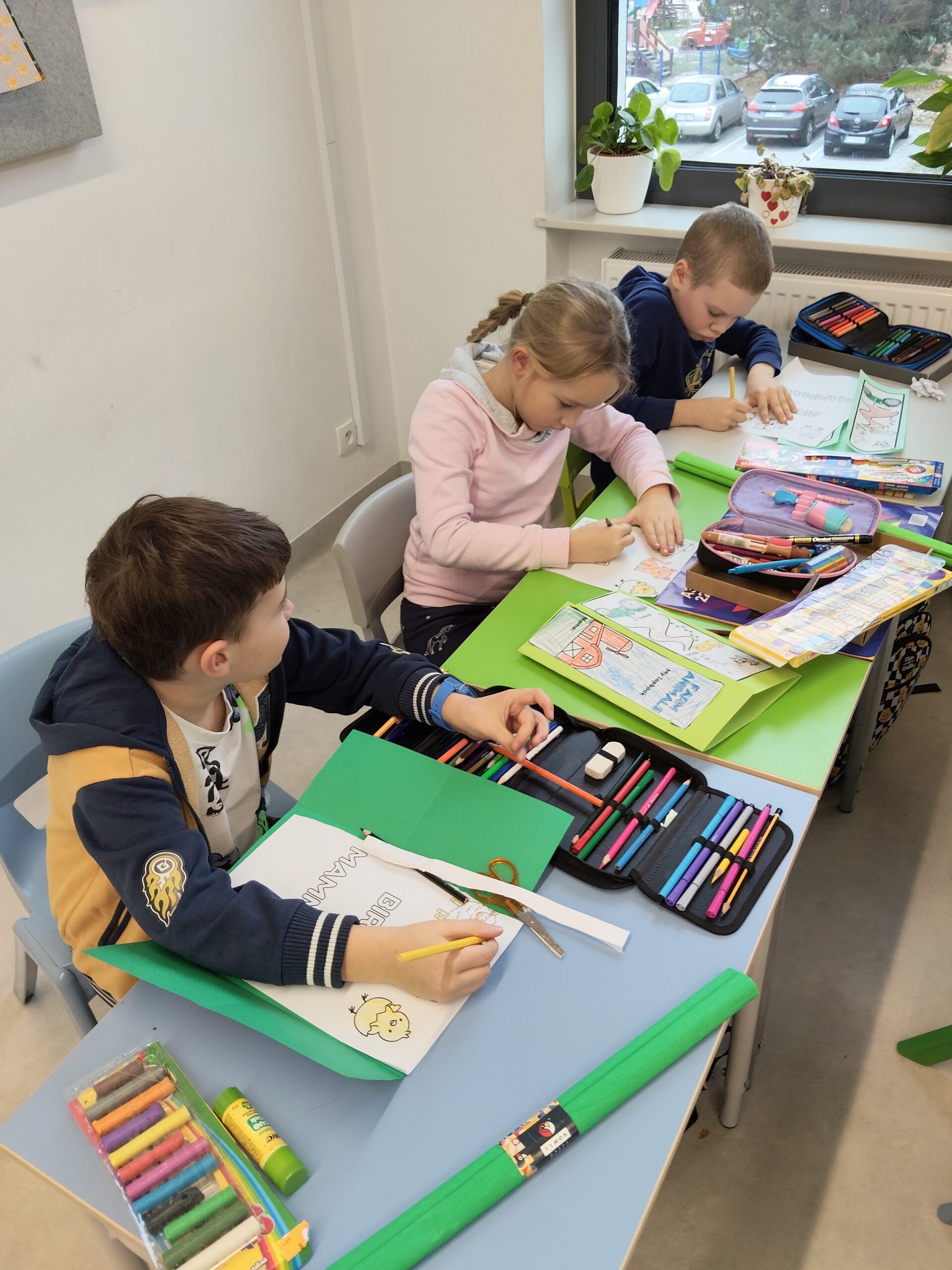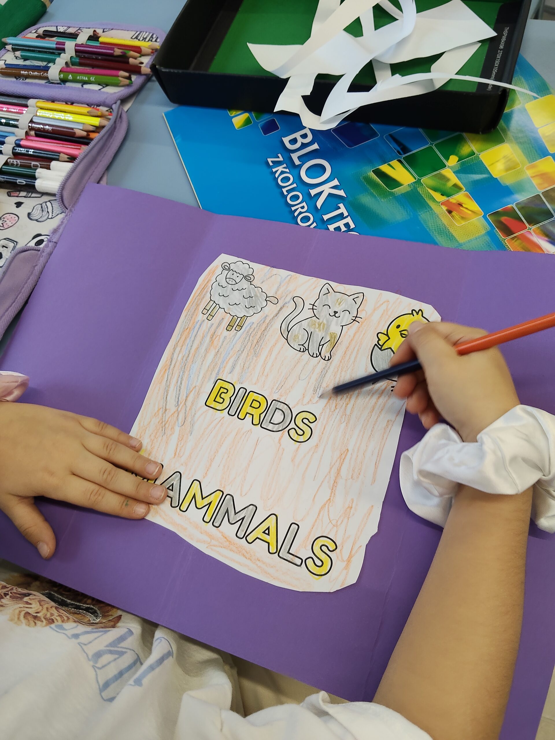 W trakcie czterech kolejnych lekcji uczniowie rozwijali kompetencje językowe, społeczne i poznawcze poprzez zróżnicowane i angażujące aktywności. Pierwsza lekcja dotyczyła rozpoznawania i klasyfikowania zwierząt hodowlanych. Uczniowie oglądali materiał edukacyjny, porządkowali nazwy zwierząt oraz rozróżniali birds i mammals, utrwalając słownictwo za pomocą quizów tematycznych. Druga lekcja poświęcona była produktom pochodzenia zwierzęcego. Dzieci wykonywały element lapbooka prezentującego słownictwo związane z produktami takimi jak milk, meat czy wool. Podczas trzeciej lekcji uczniowie pracowali z materiałem muzyczno-plastycznym. Nauka piosenki „Farm Animals Song” oraz tworzenie zagrody gospodarstwa sprzyjały aktywnemu wykorzystywaniu angielskich nazw zwierząt i kolorów. Czwarta lekcja integrowała edukację matematyczną z językiem angielskim. Uczniowie wykonywali proste działania w zakresie do 8, stosując angielskie liczebniki i ilustracje zwierząt.