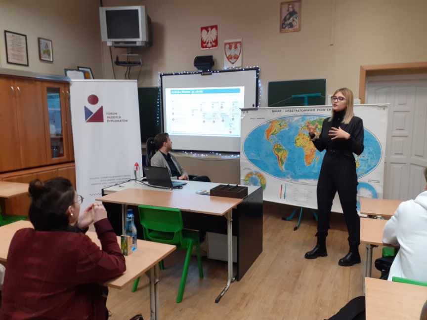 We wtorek 6 grudnia, w XVI LO odbyło się spotkanie z przedstawicielami Forum Młodych Dyplomatów. Klasy 4b LO i 4d LO uczestniczyły w warsztatach, które miały przekazać wiedzę i energię licealistom. Uczniowie dowiedzieli się jak wyglądała droga do państwa Izrael – syjonizm i antysemityzm, oraz arabska wiosna- przyczyny, przebieg i konsekwencje dla państw regionu. Warsztaty miały na celu ugruntować i uzupełnić wiedzę, z którą uczniowie mają do czynienia na co dzień. Za aktywność, dyskusję oraz konkurs Kahoot z nagrodami serdecznie dziękujemy, naszym prelegentom i naszym uczniom klas czwartych.
