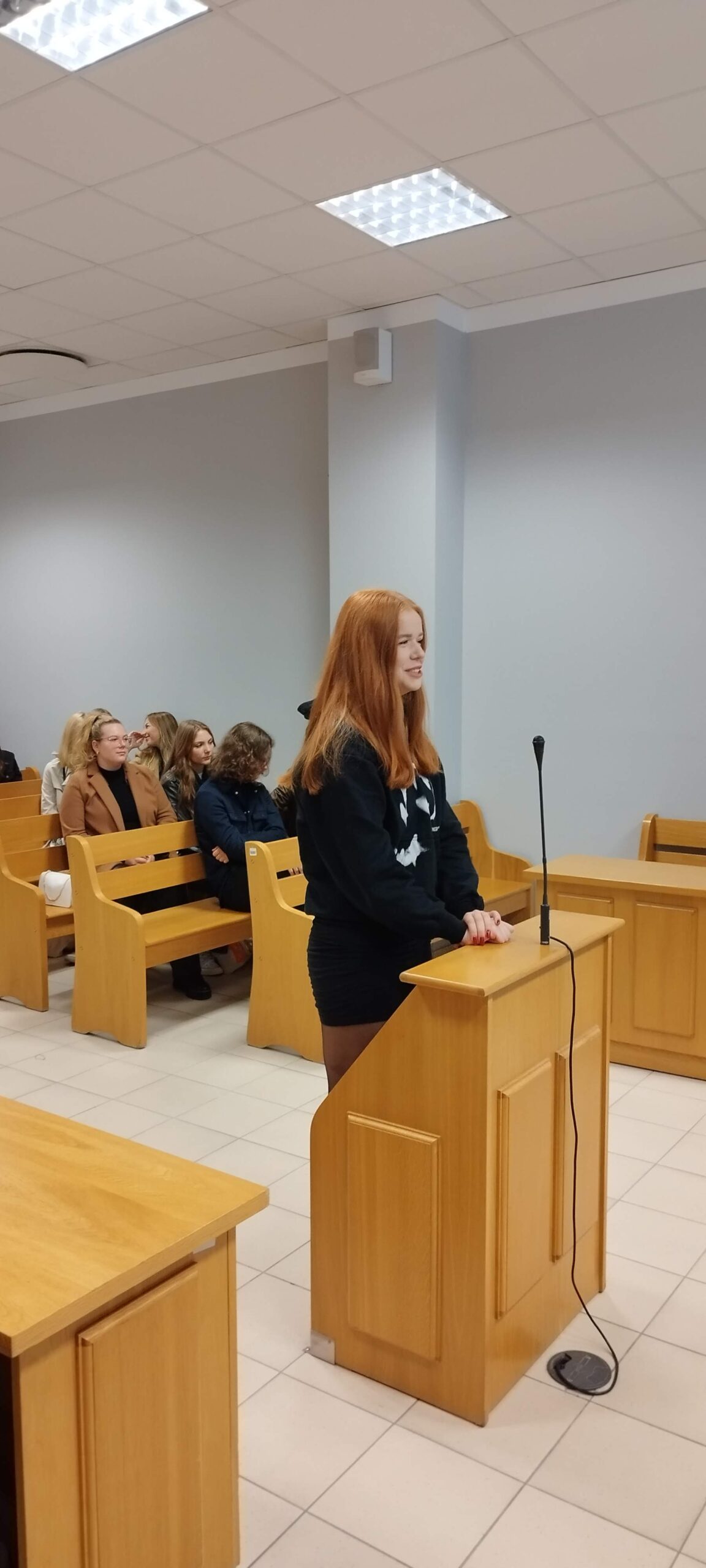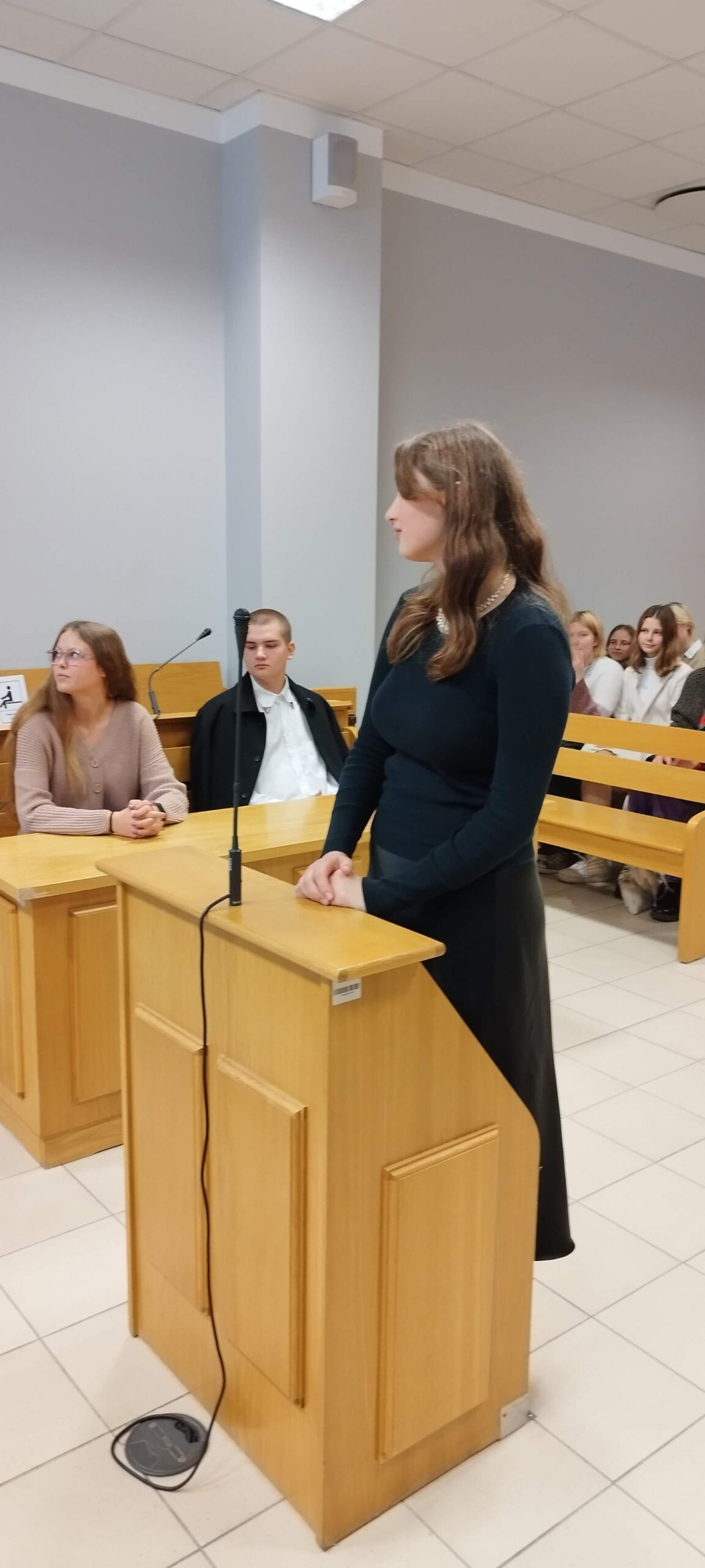 W dniu 18 października, klasy rozszerzające WOS wybrały się do Sądu Rejonowego w Poznaniu. Mieli okazję zobaczyć, jak wygląda prawdziwa rozprawa sądowa. Sędzia opowiedział ciekawostki dotyczące postępowań i odpowiadał na zadane pytania. Najciekawszy jednak był udział w symulacji procesu karnego. Uczniowie wcielili się w role obrońcy, prokuratora, sędziów, świadków i oskarżonych. Dzięki temu mogli zobaczyć, jak będzie wyglądała wymarzona praca niektórych z nich.